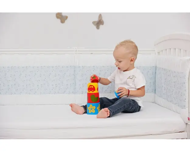 Aparatorile laterale pentru patut sunt utile si necesare inca din primele zile de viata ale bebelusului. Acestea il protejeaza pe cel mic de curentii din camera, iar ulterior previn, accidentele nedor Produsul cu denumirea Set protectii patut KidsDecor din bumbac Blue Ducks 60x120 cm face parte din brandul Kids decor, se afla in categoria Costume carnaval copii si subcategoria