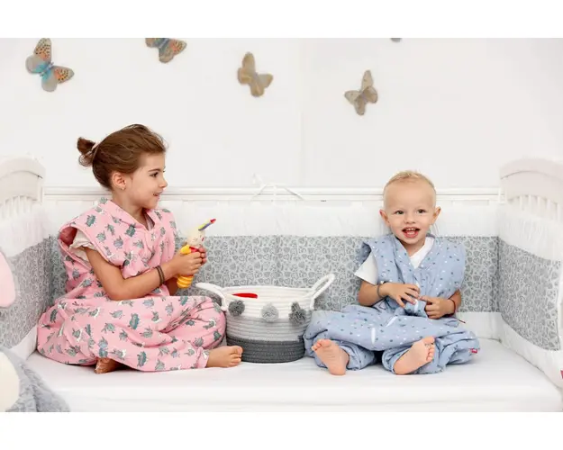 Aparatorile laterale pentru patut sunt utile si necesare inca din primele zile de viata ale bebelusului. Acestea il protejeaza pe cel mic de curentii din camera, iar ulterior previn, accidentele nedor Produsul cu denumirea Set protectii patut KidsDecor din bumbac Gray Hearts 50 x 100 cm face parte din brandul Kids decor, se afla in categoria Costume carnaval copii si subcategoria