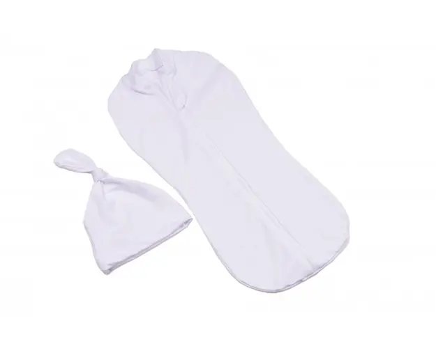 Set sistem de infasat si caciulita din bumbac organic alba 0-3 luni