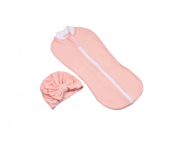 Set sistem de infasat si turban din bambus roz 0-3 luni