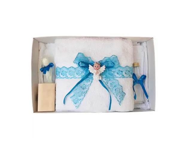 Set trusou botez, cutie trusou si lumanare, dantela si Ingeras, decor Turcoaz, Denikos® 561
