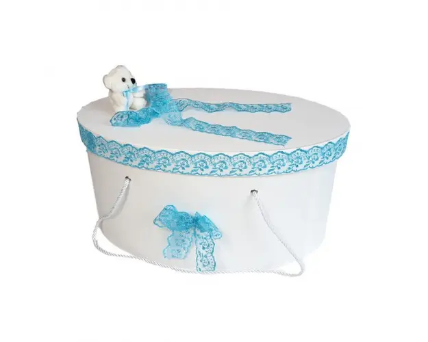 Set Ursuleti trusou botez, cutie trusou si lumanare, decor Turcoaz, Denikos® 580 DESCRIERE Set special creat pentru ceremonia de botez. Setul este alcatuit din trusou complet, o cutie pentru transportul trusoului si hainutelor de botez si o lumanare botez asortata. Trusoul pentru botez contine: - prosop mare pentru bebelus, dimensiuni 70 x 140 cm, 100% bumbac; - panza de mir, 100% bumbac; - prosop pentru preot, dimensiuni 30 x 50 cm, 100% bumbac; - fasa de botez, dimensiune 150 cm; - sticluta de mir, capacitate 100 ml; - sapunel in forma de bebelus; - cutiuta pentru suvita de par. - cutie trusou; - lumanare botez decorata (35 cm h). Cutia este special creata pentru transportul trusoului de botez si a hainutelor bebelusului. Cutia are forma ovala si este realizata din carton gros, rezistent. Poate fi utilizata dupa botez ca si cutie de depozitatre a jucariilor sau a amintirilor dragi. Cutia este prevazuta cu doua manere, necesare in timpul transportului. Decorul trusoului, al cutiei de trusou si al lumanarii este realizat dintr-o combinatie de tul, fundite, dantela si ursuleti dragalasi. PERSONALIZARE Produsul se poate personaliza cu numele copilului. Numele copilului poate fi scris pe capac cu ajutorul unor litere decupate din carton (cost suplimentar) sau prin brodare pe prosopul copilului, panza si fasa (cost suplimentar). Daca doresti personalizare, alege la optiuni cu personalizare si te vom contacta telefonic pentru a stabili detaliile. Produsul cu denumirea Set Ursuleti trusou botez, cutie trusou si lumanare, decor Turcoaz, Denikos® 580 face parte din brandul Produs vandut si livrat de sc denikos creativ shop online srl, se afla in categoria Barbie si subcategoria