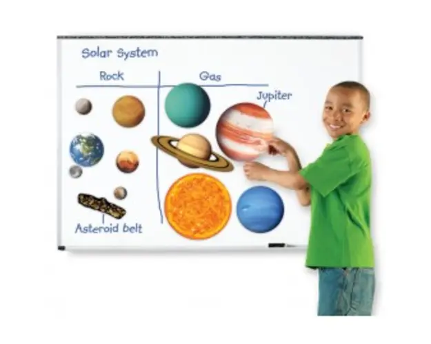 Tabla din sala de clasa va prinde viata prin stiinta! Magneti de toate culorile, detaliati real, capteaza atentia elevilor cu privire la conceptele sistemului solar. Setul include 8 planete, Pluto (planeta micuta), Soarele, Luna, centura asteroidala si ghid de activitate. Cel mai mare, Soarele, masoara 25 cm in diametru. Varsta recomandata: 5 - 9 ani. Produsul cu denumirea Sistem solar magnetic face parte din brandul Learning resources, se afla in categoria Astronomie si subcategoria