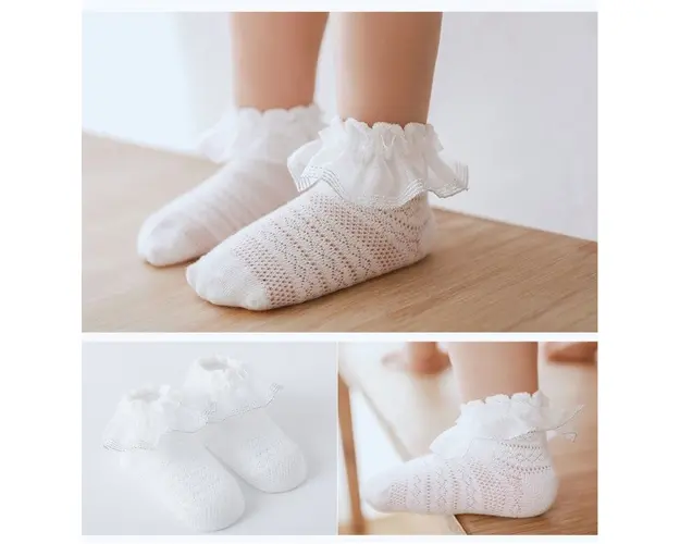 Marimi: 6-9, 9-12, 12-18 luni Sosete pentru fetite, cu model din tesatura si cu danteluta aplicata. Ofera eleganta tinutelor micutelor domnisoare. Sunt disponibile in diverse culori. Compozitie: 95% bumbac, 5% elastane Produsul cu denumirea Sosete cu danteluta si model din tesatura face parte din brandul , se afla in categoria Tetine si subcategoria