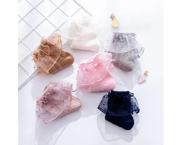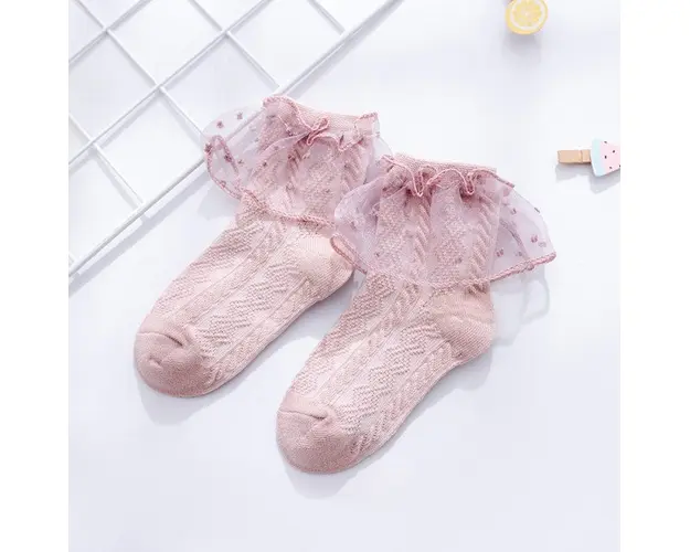Sosetele cu model din tesatura si volanas din tulle