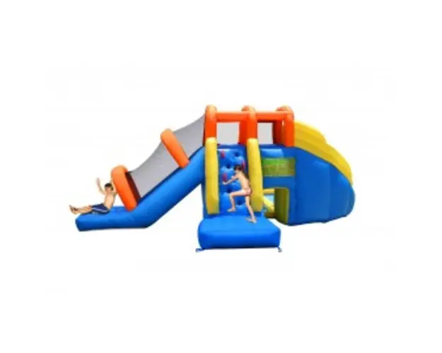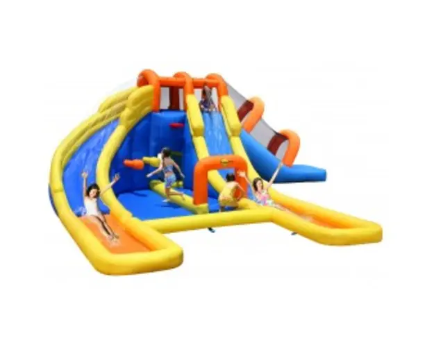 Spatiu de joaca gonflabil Mini water park Spatiu de joaca gonflabil cu apa. Spatiul de joaca este gata de folosit in maxim 2 minute si este conectat in permanenta la un compresor de aer. Materialele folosite sint de o calitate foarte buna, plasa de siguranta din dotare asigura protectia utilizatorilor. Caracteristici: saltea cu apa, spatiu de catarat, spatiu de sarit, doua tobogane cu apa, cos de baschet, loc de catarat, tunel Pachetul contine: spatiul de joaca; compresor; geanta de transport; kit pentru reparatii minore; manual cu instructiuni in limba romana; Caracteristici tehnice: material PVC industrial cu cusatura dubla; standarde de calitate : CE/EN71; GS; EMC/BS/SAA; 00.3/16CFR1505; UL; ASTM Greutate proprie: 42 kg. Greutate maxima admisa: 270 Kg. Maxim 5 jucatori in acelasi timp. Nota: Apa nu este recirculata! Dimensiuni dupa asamblare:735x630x250 cm. Caracteristici: saltea cu apa, spatiu de catarat, spatiu de sarit, doua tobogane cu apa, cos de baschet, loc de catarat, tunel, Produsul cu denumirea Spatiu de joaca gonflabil Mini water park face parte din brandul Happy hop, se afla in categoria Spatii de joaca din lemn si subcategoria