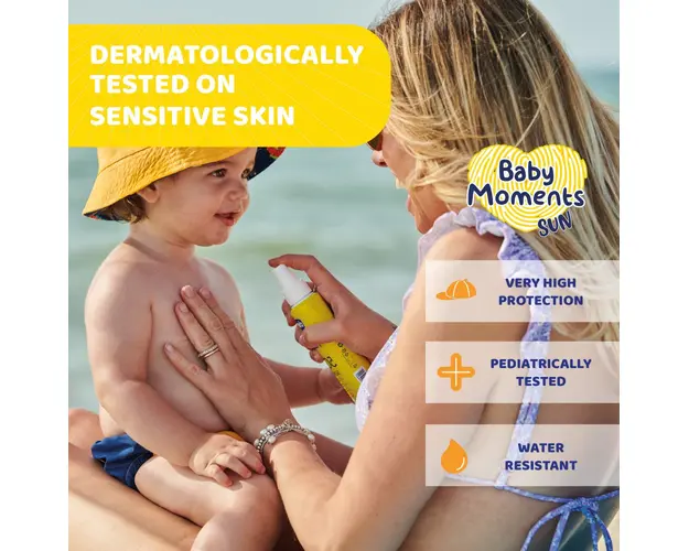 Noua gama de produse pentru protectie solara sunt concepute in concordanta cu nevoile specifice ale pielii bebelusilor si copiilor.Aceasta formula (3 PRO-TECH) protejeaza impotriva tuturor tipurilor d Produsul cu denumirea Spray protectie solara Chicco Baby Moments SPF50+ 150 ml face parte din brandul Micro, se afla in categoria Igiena si ingrijire si subcategoria