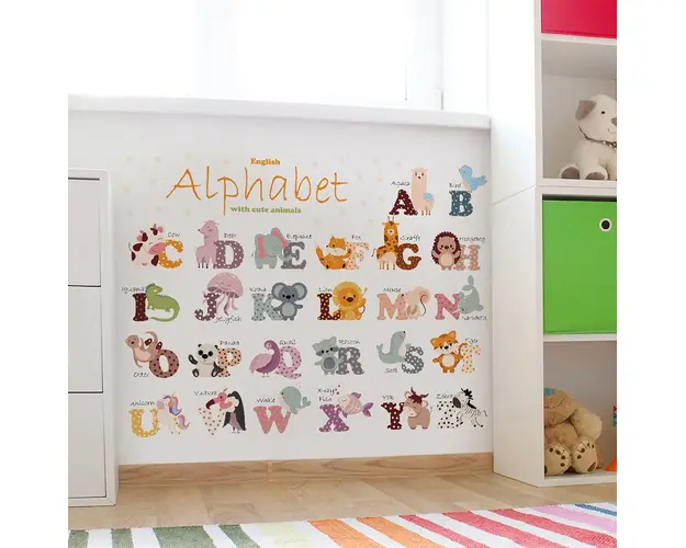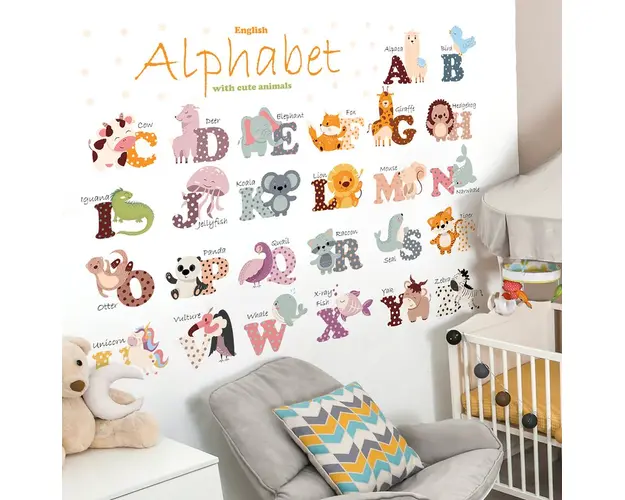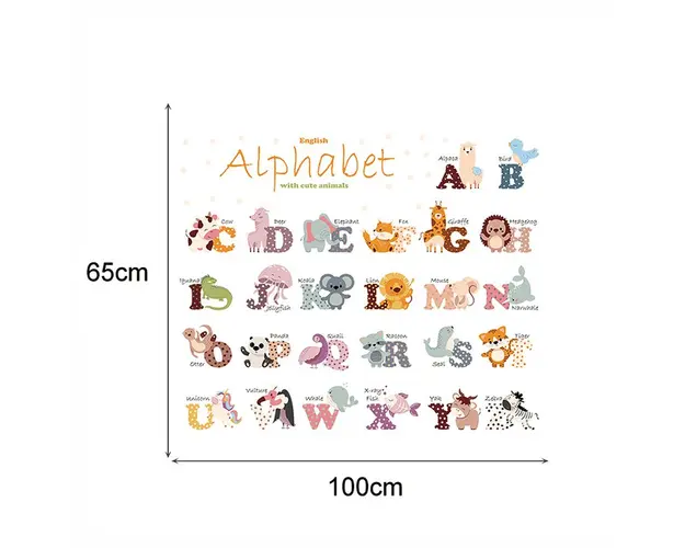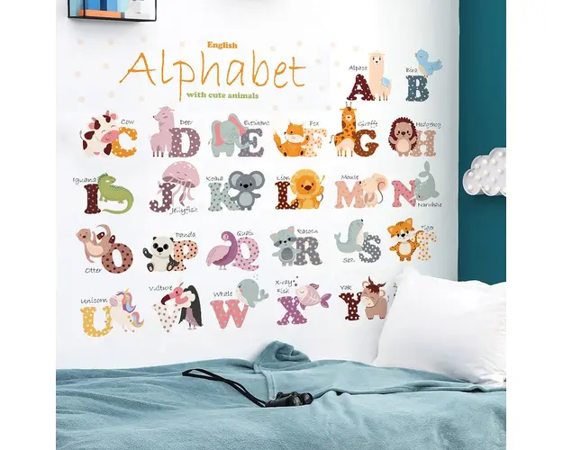 Sticker decorativ pentru copii autoadeziv Alfabetul Animalelor 65 x 100 cm