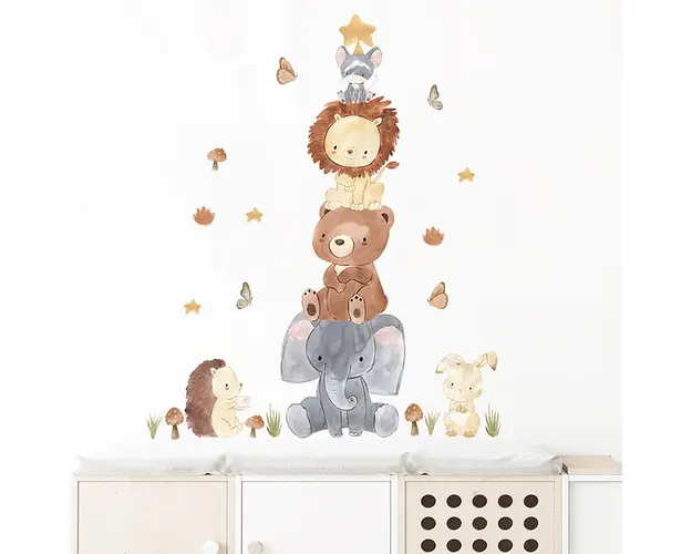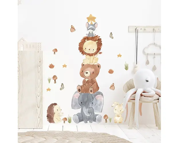 Sticker decorativ pentru copii autoadeziv Piramida Animalelor 100x80 cm