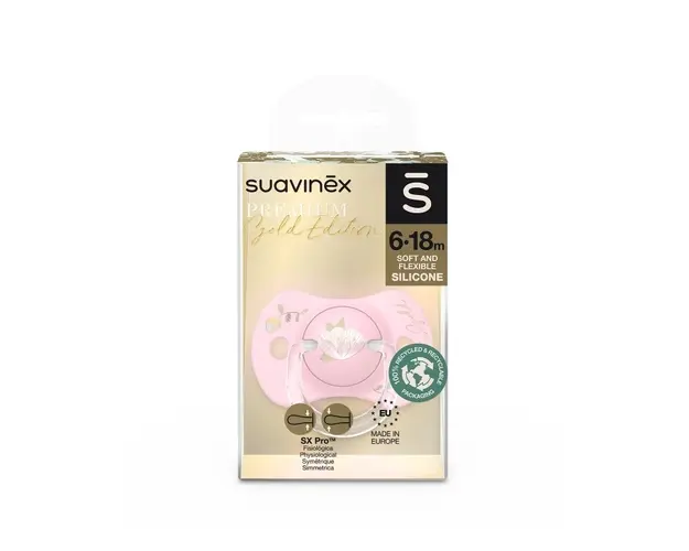 Suzeta fiziologica SX Pro din silicon 6-18 luni Roz Gold Premium
