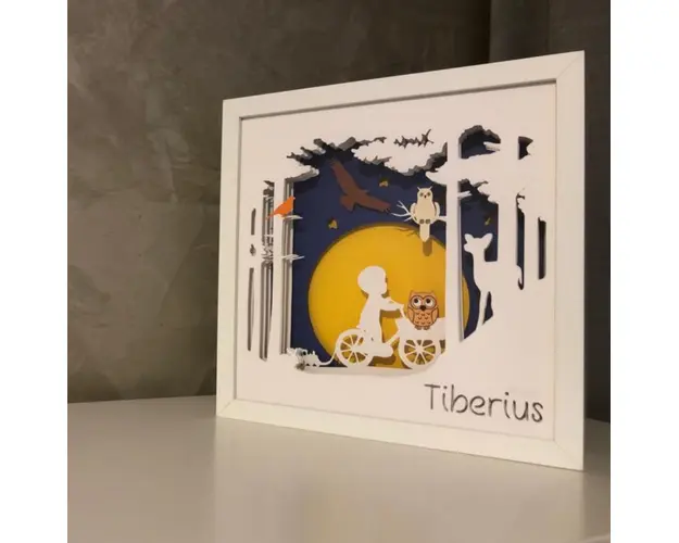 Sunt piese unicat, personalizate, care spun o poveste imaginativa prin iluminarea hartiei decupate si creeaza o atmosfera magica in incaperea in care sunt expuse, adaugand o nota de originalitate.nbsp Produsul cu denumirea Tablou luminos Baietel 023 face parte din brandul Noorhandmadeatelier, se afla in categoria Costume carnaval copii si subcategoria