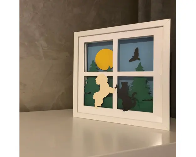 Folosite ca lampa de veghe pentru cei mici sau ca decor luminos 3D pentru cei mari, tablourile create in atelierul Noor emana o lumina calda si placuta, perfecta pentru povestile de la culcare sau ca Produsul cu denumirea Tablou luminos Caine si pisica 001 face parte din brandul Noorhandmadeatelier, se afla in categoria Costume carnaval copii si subcategoria