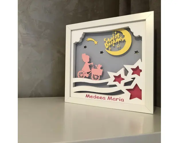 Folosite ca lampa de veghe pentru cei mici sau ca decor luminos 3D pentru cei mari, tablourile create in atelierul Noor emana o lumina calda si placuta, perfecta pentru povestile de la culcare sau ca Produsul cu denumirea Tablou luminos Fetita 008 face parte din brandul Noorhandmadeatelier, se afla in categoria Costume carnaval copii si subcategoria