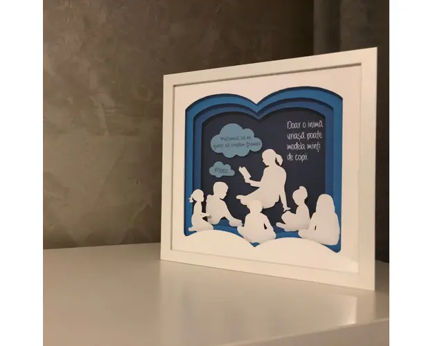 Folosite ca lampa de veghe pentru cei mici sau ca decor luminos 3D pentru cei mari, tablourile create in atelierul Noor emana o lumina calda si placuta, perfecta pentru povestile de la culcare sau ca Produsul cu denumirea Tablou luminos InvatatoareEducatoare 005 face parte din brandul Noorhandmadeatelier, se afla in categoria Costume carnaval copii si subcategoria