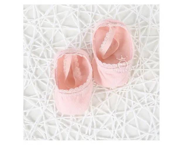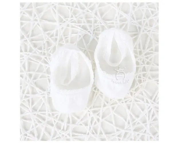 Marimi: 9-12, 12-18, 18-24 luni Talpici pentru fetite, cu margine dantelata si cu bareta din elastic moale pentru fixarea pe piciorus. Modelul este disponibil in diverse culori. Pe talpa sunt prevazute cu inscriptie din silicon antiderapant. Compozitie: 90% bumbac, 10% elastan Produsul cu denumirea Talpici cu danteluta pentru fetite face parte din brandul , se afla in categoria Tetine si subcategoria