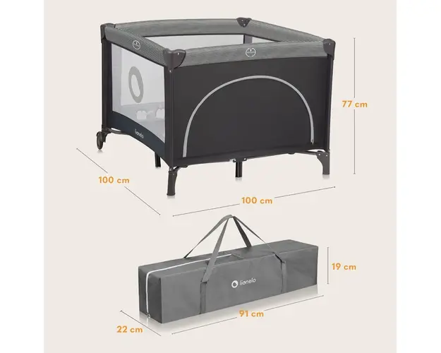 Tarc de joaca copii Lionelo Bonnie 100 x 100 cm gri inchis