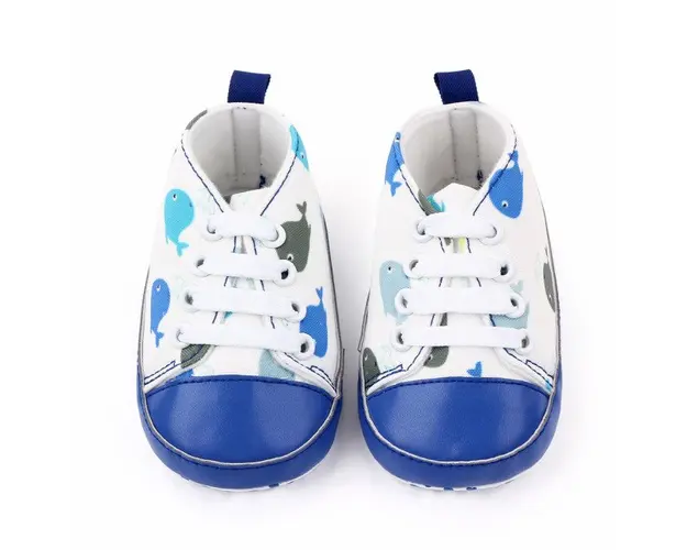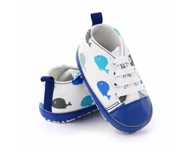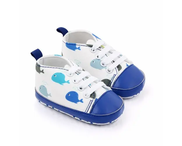 Marimi: 3-6 luni (lungimea talpitei: la interior - 10,5 cm; la exterior - 11 cm) 6-9 luni (lungimea talpitei: la interior - 11,5 cm; la exterior - 12 cm) 9 -12 luni (lungimea talpitei: la interior - 12,5 cm; la exterior - 13 cm) Tenisi pentru bebelusi din material textil, imprimati cu balenute colorate, se inchid cu sireturi. Culoare: alb Talpa: material textil cu inscriptie antiderapanta. Produsul cu denumirea Tenisi albi pentru bebelusi - Balenute face parte din brandul Superfinish, se afla in categoria Barbie si subcategoria
