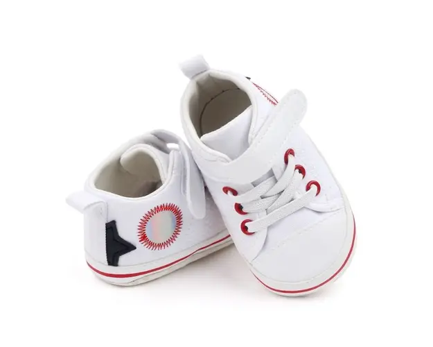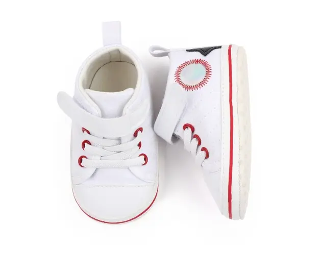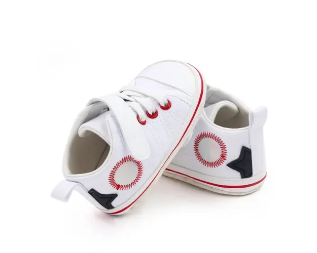 Marimi: 3 -6 luni (lungime talpita la interior 10,5 cm, lungime talpita la exterior 11 cm) 6-9 luni (lungime talpita la interior 11,6 cm, lungime talpita la exterior 12 cm) 9-12 luni (lungime talpita la interior 12,7 cm, lungime talpita la exterior 13 cm) Culoare: alb Material: textil Inchidere: sireturi din elastic si bareta cu arici Talpa: din material textil cu inscriptie antiderapanta Tenisi pentru bebelusi, albi, cu detalii rosii, ideali pentru primele miscari ale celor mici. Acest model modern este fabricat din materiale usoare si respirabile, asigurand confortul picioarelor delicate ale bebelusilor. Inchiderea cu siret si velcro ofera o fixare sigura si ajustabila, iar talpa moale este special conceputa pentru a sustine pasii timpurii, oferind aderenta si protectie. Designul atragator, cu broderii inspirate din lumea sportului, adauga un plus de stil. Potriviti pentru bebelusi de 0-12 luni, acesti pantofi sunt perfecti pentru plimbari si activitati zilnice. Produsul cu denumirea Tenisi albi pentru bebelusi - White face parte din brandul Eurobaby, se afla in categoria Tetine si subcategoria