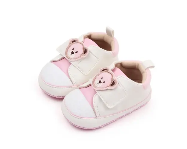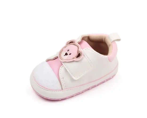 Marimi: 3 -6 luni ( lungime talpita la interior 10,5 cm, lungime talpita la exterior 11 cm) 6-9 luni ( lungime talpita la interior 11,5 cm, lungime talpita la exterior 12 cm) 9-12 luni (lungime talpita la interior 12,5 cm, lungime talpita la exterior 13 cm) Tenisi pentru fetite, din material tip piele ecologica, se inchid cu bareta cu arici intr-o parte, pe care este aplicat un ursulet plusat. Culoare: alb cu roz Talpa: material textil cu inscriptie antiderapanta Produsul cu denumirea Tenisi albi cu roz pentru fetite - Teddy face parte din brandul Eurobaby, se afla in categoria Tetine si subcategoria