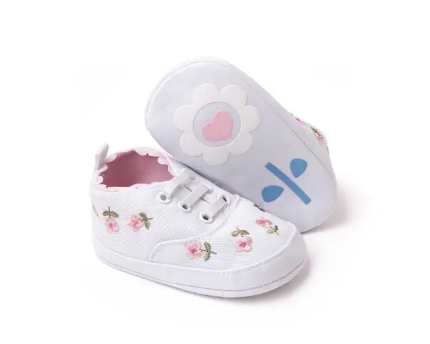 Marimi: 3-6 luni (lungime talpita la interior 10,5 cm, lungime talpita la exterior 11 cm) 6-9 luni (lungime talpita la interior 11,5 cm, lungime talpita la exterior 12 cm) 9-12 luni (lungime talpita la interior 12,7 cm, lungime talpita la exterior 13 cm) Culoare: alb Material: textil Inchidere: sireturi din elastic Talpa: textil cu inscriptie antiderapanta Tenisi pentru fetite, confectionati din material textil de inalta calitate, cu design floral brodat delicat. Acesti tenisi ofera confort pentru piciorusele delicate ale bebelusei tale. Sunt usor de incaltat si se potrivesc perfect la orice tinuta casual sau eleganta. Alegerea perfecta pentru a completa garderoba micutei tale! Produsul cu denumirea Tenisi bebelusi cu floricele brodate face parte din brandul Sevibebe, se afla in categoria Tetine si subcategoria