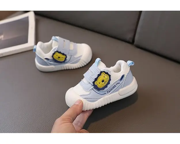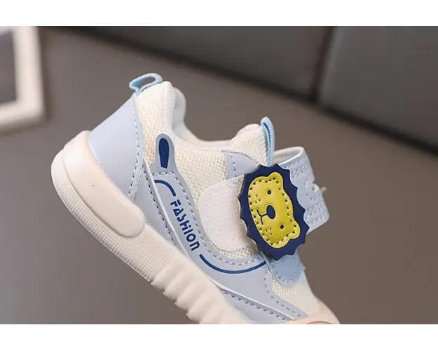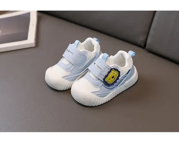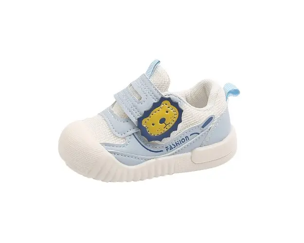 Marimi: 6-9 luni (lungime talpita in interior 11,5 cm) (17) 9-12 (lungime talpita in interior 12 cm) (18) 20 (lungime talpita in interior 12,5 cm) (19) 21 (lungime talpita in interior 13 cm) (20) 22 (lungime talpita in interior 13,5 cm) (21) Tenisi pentru copii, din material textil cu insertie de material tip piele ecologica, se inchid cu bareta cu arici intr-o parte, pe care este aplicat un cap de leu. Culoare: alb si bleu Talpa: cauciuc moale si flexibil Produsul cu denumirea Tenisi bleu pentru baietei - Lion face parte din brandul Eurobaby, se afla in categoria Barbie si subcategoria