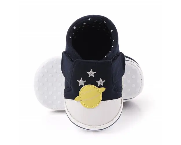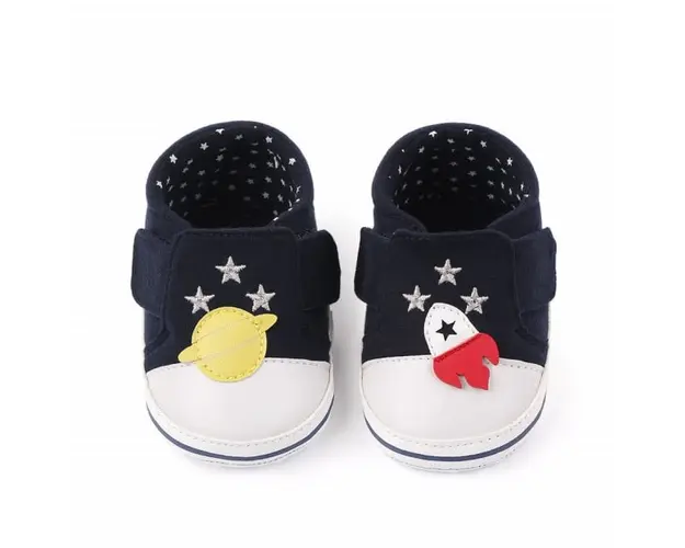 Marimi: 3 -6 luni ( lungime talpita la interior 10,5 cm, lungime talpita la exterior 11 cm) 6-9 luni ( lungime talpita la interior 11,6 cm, lungime talpita la exterior 12 cm) 9-12 luni (lungime talpita la interior 12,7 cm, lungime talpita la exterior 13 cm) Tenisi pentru baietei din material textil, cu o racheta si o planeta aplicate. Se inchid cu arici in laterale facilitand astfel incaltarea cu usurinta. Culoare: bleumarine Talpa: material textil cu inscriptie antiderapanta Produsul cu denumirea Tenisi bleumarine pentru baietei - Spatiul cosmic face parte din brandul Superfinish, se afla in categoria Barbie si subcategoria