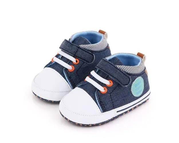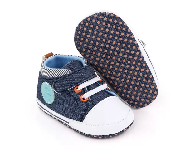 Marimi: 3 -6 luni (lungime talpita la interior 10,5 cm, lungime talpita la exterior 11 cm) 6-9 luni (lungime talpita la interior 11,6 cm, lungime talpita la exterior 12 cm) 9-12 luni (lungime talpita la interior 12,7 cm, lungime talpita la exterior 13 cm) Culoare: albastru Material: textil, denim Inchidere: siret din elastic si bareta cu arici Talpa: din material textil cu inscriptie antiderapanta Pantofiori sport din denim pentru bebelusi, ideali pentru tinute casual si plimbarile zilnice. Designul modern include accente albe la varf si la talpa, precum si un detaliu cu inscriptia "good cool baby", oferind un look adorabil si cool. Inchiderea dubla cu sireturi elastice si banda cu arici asigura o fixare sigura si confortabila, iar talpa flexibila antiderapanta ofera stabilitate in primii pasi. Materialul moale de interior ofera confort maxim pentru piciorusele sensibile ale bebelusilor. Produsul cu denumirea Tenisi denim pentru bebelusi - Cool baby face parte din brandul Eurobaby, se afla in categoria Barbie si subcategoria