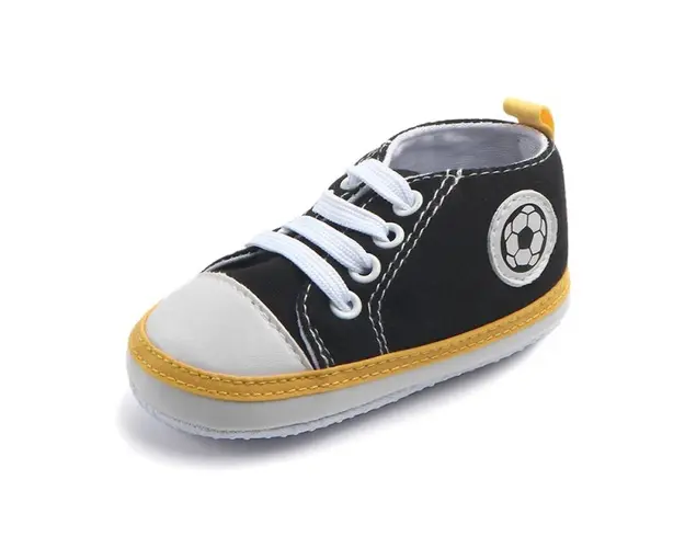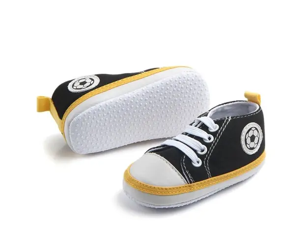 Marimi: 3 -6 luni (lungime talpita la interior 10,5 cm, lungime talpita la exterior 11 cm) 6-9 luni (lungime talpita la interior 11,6 cm, lungime talpita la exterior 12 cm) 9-12 luni (lungime talpita la interior 12,7 cm, lungime talpita la exterior 13 cm) Culoare: negru cu alb Material: textil Inchidere: sireturi Talpa: textil cu inscriptie antiderapanta Pantofiori pentru bebelusi cu un design sportiv si modern, perfecti pentru micii exploratori. Acesti pantofiori sunt realizati din materiale usoare si confortabile, permitand picioruselor delicate sa respire si sa se miste in voie. Talpa este moale, antiderapanta, oferind siguranta in primii pasi ai bebelusului. Designul in culori contrastante de negru, alb si galben, impreuna cu detaliul cu minge de fotbal pe lateral, ii transforma intr-un accesoriu adorabil pentru orice tinuta casual. Inchiderea cu siret asigura o potrivire sigura si confortabila. Acesti pantofiori sunt ideali pentru uz zilnic sau pentru a adauga un plus de stil garderobei celui mic. Produsul cu denumirea Tenisi negri pentru bebelusi - Football face parte din brandul Eurobaby, se afla in categoria Barbie si subcategoria