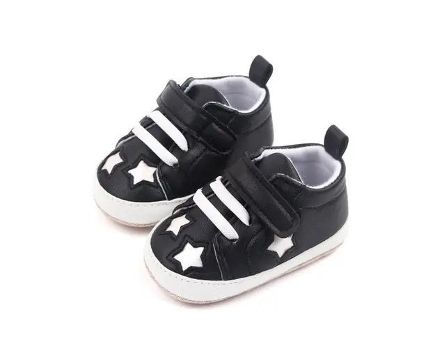 Marimi: 3 -6 luni ( lungime talpita la interior 10,5 cm, lungime talpita la exterior 11 cm) 6-9 luni ( lungime talpita la interior 11,5 cm, lungime talpita la exterior 12 cm) 9-12 luni (lungime talpita la interior 12,5 cm, lungime talpita la exterior 13 cm) Tenisi pentru fetite, se inchid cu sireturi din elastic si bareta cu arici intr-o parte, cu insertii de stelute sidefate. Culoare: negru Material: tip piele ecologica Talpa: textil cu inscriptie antiderapanta Produsul cu denumirea Tenisi negri cu stelute sidefate face parte din brandul Eurobaby, se afla in categoria Tetine si subcategoria