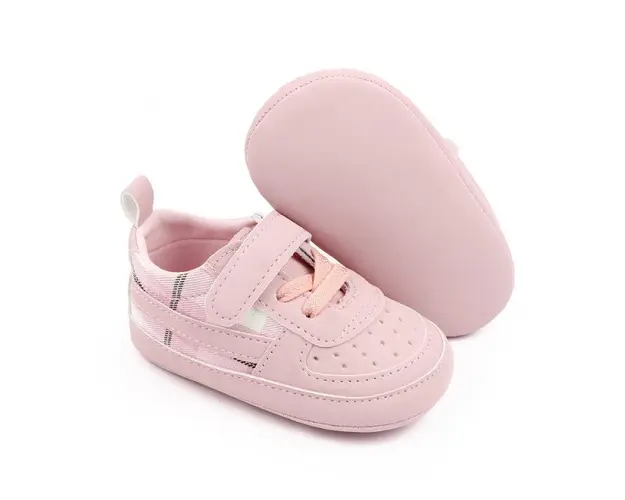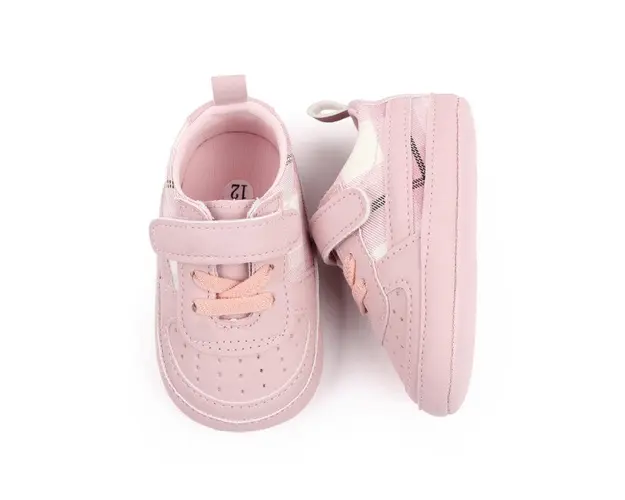 Marimi: 3 -6 luni ( lungime talpita la interior 10,5 cm, lungime talpita la exterior 11 cm) 6-9 luni ( lungime talpita la interior 11,6 cm, lungime talpita la exterior 12 cm) 9-12 luni (lungime talpita la interior 12,7 cm, lungime talpita la exterior 13 cm) Tenisi pentru fetite, din material textil cu insertie de material tip piele ecologica, cu imprimeu in carouri in laterale, se inchid cu sireturi din elastic si bareta cu arici intr-o parte. Culoare: roz Talpa: din material tip piele ecologica Produsul cu denumirea Tenisi roz pentru fetite - Plaid face parte din brandul Eurobaby, se afla in categoria Tetine si subcategoria