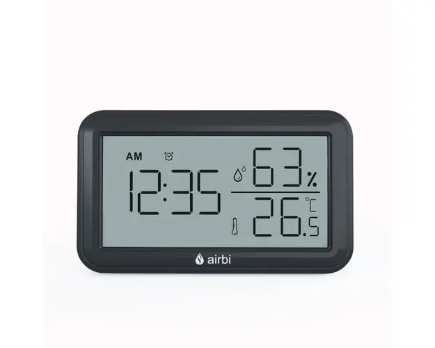 Termometru si higrometru AirBi Line digital de camera ceas cu alarma si suport expandabil negru BI1052