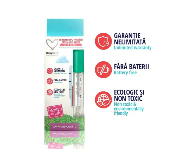 Termometru medical fara mercur Easycare clasic din sticla