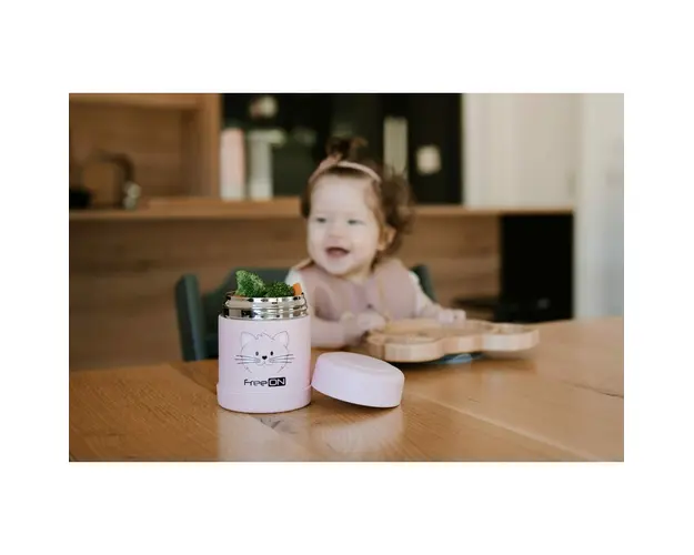 Termosul FreeON este tot ce aveti nevoie pentru plimbari fara griji cu caruciorul sau pentru calatoriile mai lungi.CaracteristiciVasul termic se potriveste pana la 350 ml de continut, ceea ce va fi su Produsul cu denumirea Termos FreeON pentru alimente solide Beige Bear face parte din brandul Fresk, se afla in categoria Animale si subcategoria