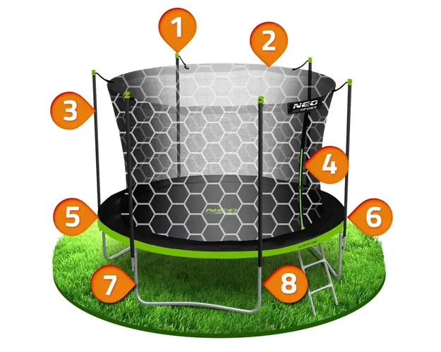 Caracteristici principale - Capacele stalpilor asigura instalarea rapida a plasei de siguranta-nbspPlasa de siguranta interioara , cusuta in partea de sus pentru intarire-nbspStalpi metalici , acoperi Produsul cu denumirea Trambulina de gradina cu plasa interioara si scara 312 cm Neo-Sport 10FT fagure Negru face parte din brandul Green sprouts, se afla in categoria Jucarii magnetice si subcategoria