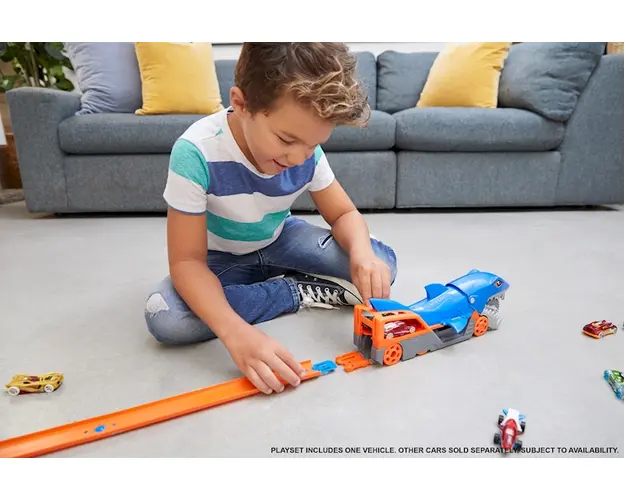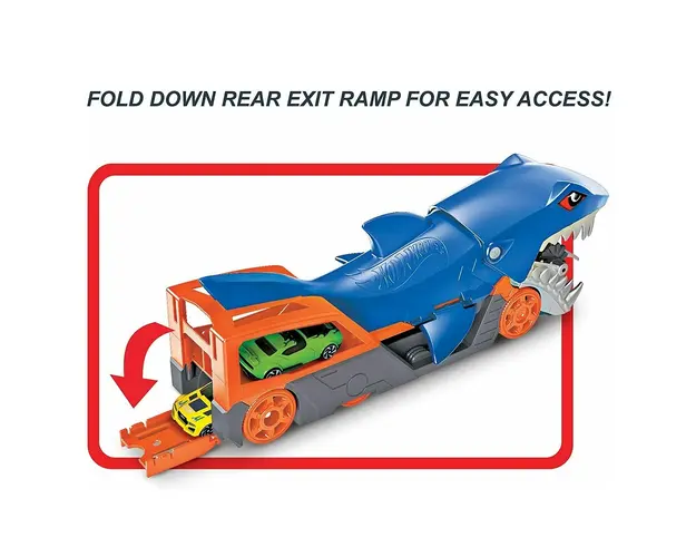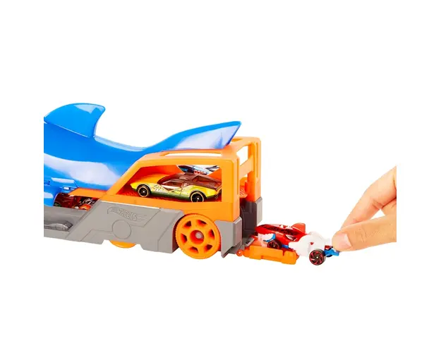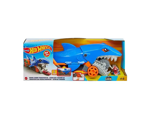 Caracteristici Transportator Hot Wheels rechin Shark Chomp: Setul Hot Wheels cu transportatorul Shark Chomp este perfect pentru a-ti intregi colectia! Are un mecanism special prin care rechinul "mananca" masinute Toate masinutele sunt depozitate in interiorul transportatorului Cand vrei sa te joci cu masinutele poti deschide rampa din spate Setul include 1 masinuta la scara 1:64 Poti depozita inca 4 masinute in transportator (neincluse in set) Setul contine: 1 transportator Shark Chomp 1 masinuta Hot Wheels 1:64 Mattel GVG36 Produsul cu denumirea Transportator Hot Wheels rechin Shark Chomp face parte din brandul Mattel, se afla in categoria Jucarii magnetice si subcategoria