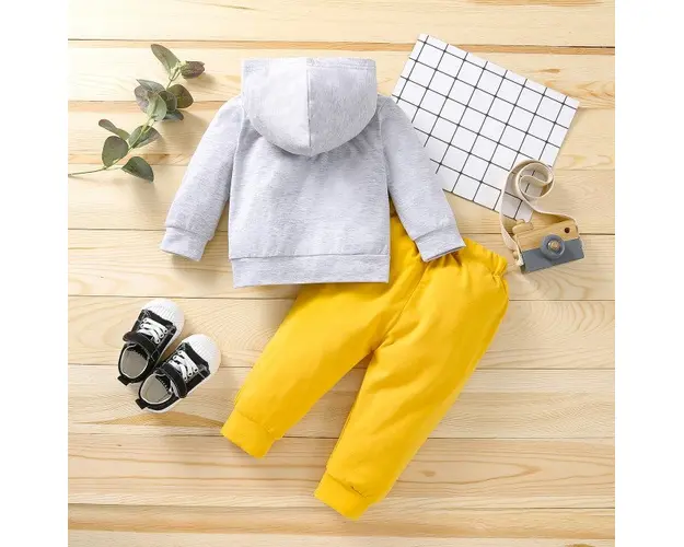 Marimi: 0-3, 3-6, 6-9, 9-12 luni Material: 95% bumbac, 5% spandex Trening pentru bebelusi format din: - hanorac gri, cu inscriptie "Mama's boy" pe piept, prevazut cu gluga; - pantaloni galbeni, cu buzunare, prevazuti cu elastic in talie; Pantofiorii din imagine sunt cu titlu de prezentare si nu sunt inclusi in pret. INTRETINERE: Se spala la masina la 40 impreuna cu alte culori similare si se calca pe dos. Nu se aplica inalbitori si nu se usuca la masina. Culorile produselor pot varia in functie de monitorul calculatorului si calibrarea acestuia. Produsul cu denumirea Trening pentru baietei - Mama's boy face parte din brandul Eurobaby, se afla in categoria Prepararea hranei si subcategoria