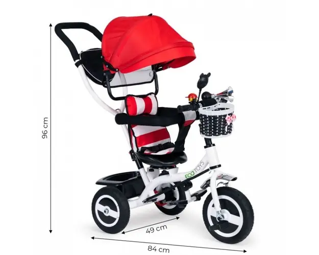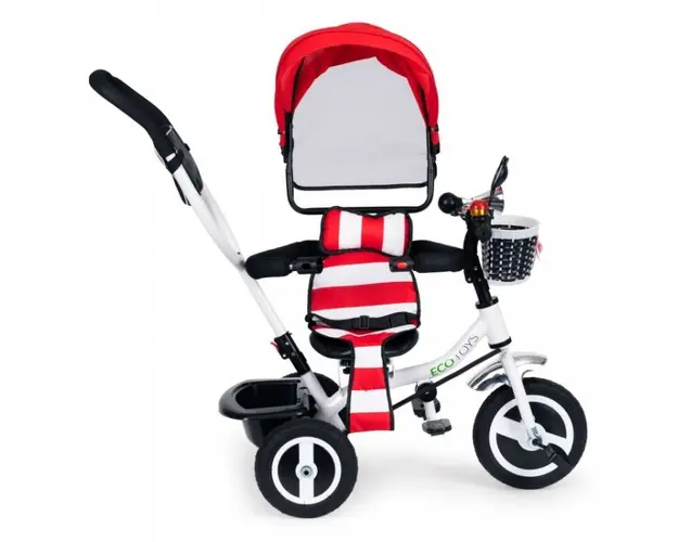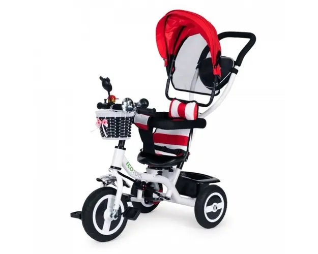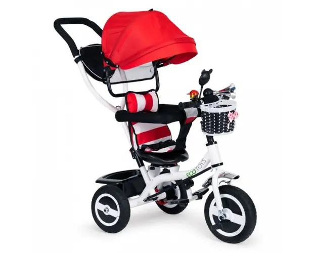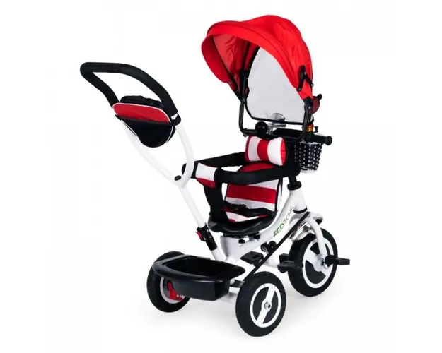 Tricicleta Ecotoys asigur confortul atacirct pentru copil, cacirct i pentru printe, datorit dotrii cu capotin retractabil i macircner de ghidare a direciei. Tricicleta cu cadru metalic i roi din cauci Produsul cu denumirea Tricicleta Ecotoys Rosie face parte din brandul Mochtoys, se afla in categoria Litere- limbaj- cifre si subcategoria