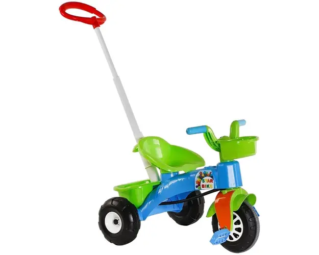 CaracteristiciTricicleta pentru copii cu varsta incepand de la 3 aniDesign elegant, ergonomicManerul pentru parinte este reglabil pe inaltime pentru o manevrare cat mai usoaraCos de depozitare in fata Produsul cu denumirea Tricicleta Pilsan Star blue cu maner face parte din brandul Pilsan, se afla in categoria Litere- limbaj- cifre si subcategoria