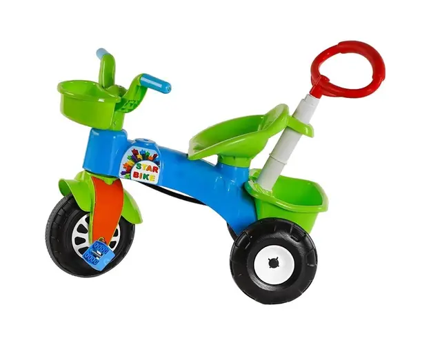 CaracteristiciTricicleta pentru copii cu varsta incepand de la 3 aniDesign elegant, ergonomicManerul pentru parinte este reglabil pe inaltime pentru o manevrare cat mai usoaraCos de depozitare in fata Produsul cu denumirea Tricicleta Pilsan Star blue cu maner face parte din brandul Pilsan, se afla in categoria Litere- limbaj- cifre si subcategoria