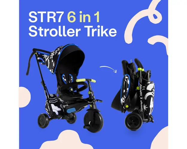 Descrierea produsului Cunoscutul brand de triciclete pentru copii SmarTrike si artista Kelly Anna si-au unit fortele pentru realizarea unui design premium al tricicletei cu functii de carucio STR7 Str Produsul cu denumirea Tricicleta pliabila si carucior Smart Trike 6 in 1 Kelly Anna-Explore face parte din brandul Smart trike, se afla in categoria Litere- limbaj- cifre si subcategoria