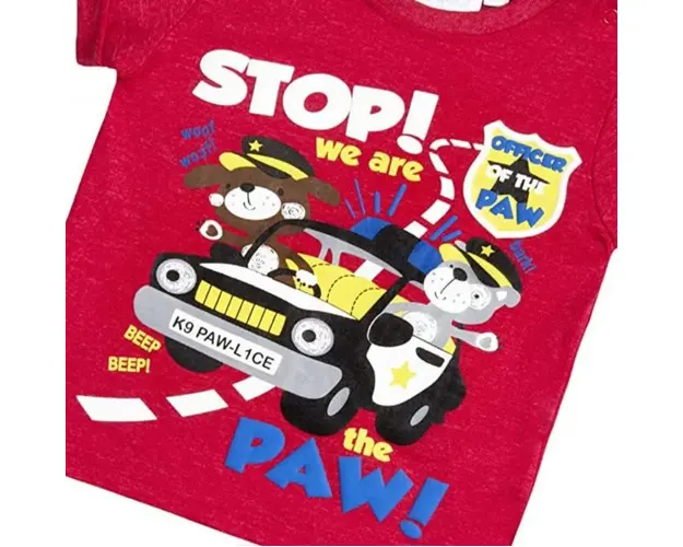 Marime: 3-6, 6-9, 9-12, 12-18, 18-24 luni Tricou rosu pentru baietei, imprimat cu masina de politie a ursuletilor. Material: 100% bumbac Produsul cu denumirea Tricou baietei - Stop! face parte din brandul Eurobaby, se afla in categoria Prepararea hranei si subcategoria
