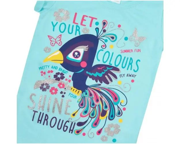 Marime: 4 ani Material: 100% bumbac Tricou bleu pentru fetite, imprimat cu o pasare si inscriptie viu colorata. Produsul cu denumirea Tricou fetite - Let shine face parte din brandul Eurobaby, se afla in categoria Prepararea hranei si subcategoria