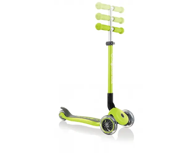 Trotineta Primo Lights pliabila.nbspCARACTERISTICISIGURANTA Buton blocare ghidon, pozitionat pe fata(sigur si simplu de actionat) pentru blocarea sistemului de virare la incepatori ( blocarea sistemul Produsul cu denumirea Trotineta Globber Primo pliabila verde face parte din brandul Globo, se afla in categoria Litere- limbaj- cifre si subcategoria