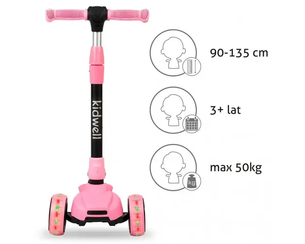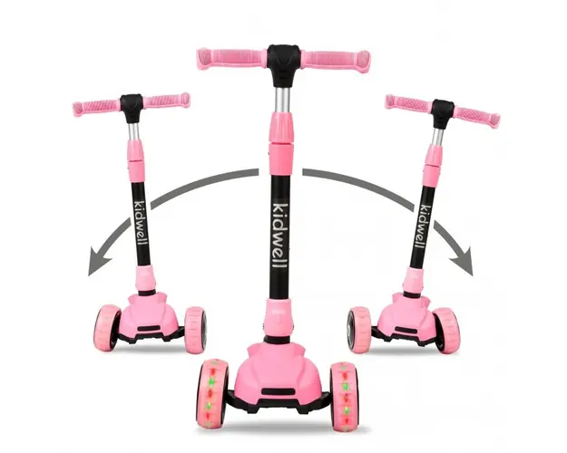 Constructie durabila cu sistem de pliere rapida. Trei roti care permit chiar si celor mai mici sa pastreze echilibrul cu usurinta. Roti late din poliuretan cu iluminare LED incorporata.Ghidon usor, di Produsul cu denumirea Trotineta Kidwell JAX roz face parte din brandul Kiddieland, se afla in categoria Litere- limbaj- cifre si subcategoria