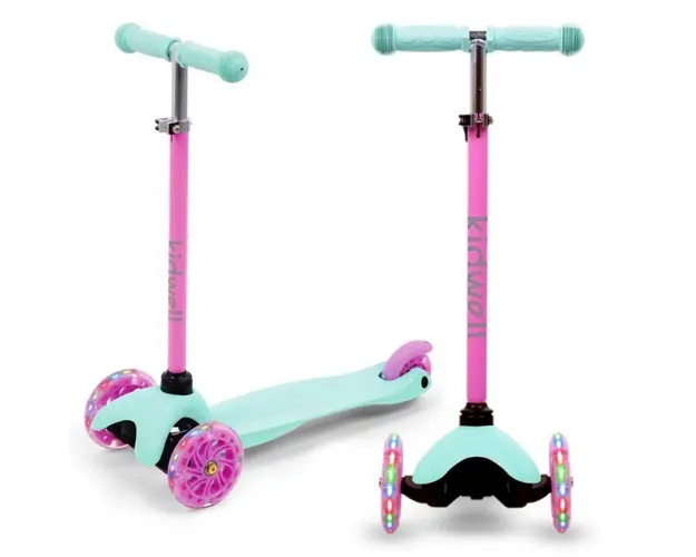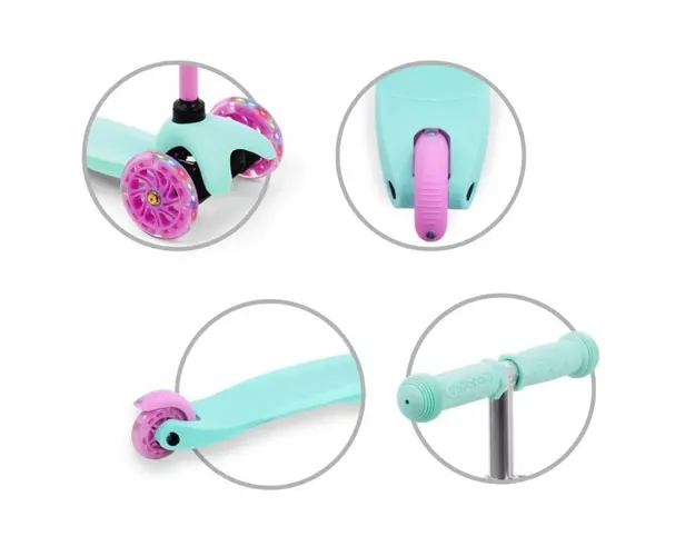 Structura durabila, usoara, cantarind 1.8 kg.Platforma larga de pe rotile din fata ajuta la mentinerea echilibrului.Rotile din poliuretan silentioase si durabile asigura o aderenta foarte buna la sol. Produsul cu denumirea Trotineta Kidwell Uno mint face parte din brandul Kiddieland, se afla in categoria Litere- limbaj- cifre si subcategoria