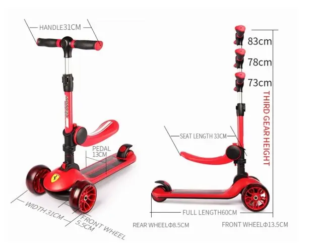 Trotineta pliabila Ferrari Twist rosie cu scaun
