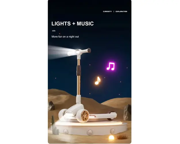 Trotineta pliabila pentru copii cu sunete si proiector LED Black