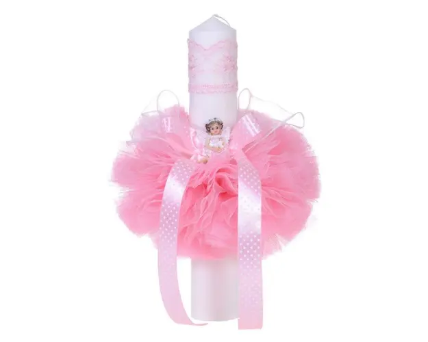 Trusou botez in landou si lumanare glob cu ingeras, decor roz Denikos® 159