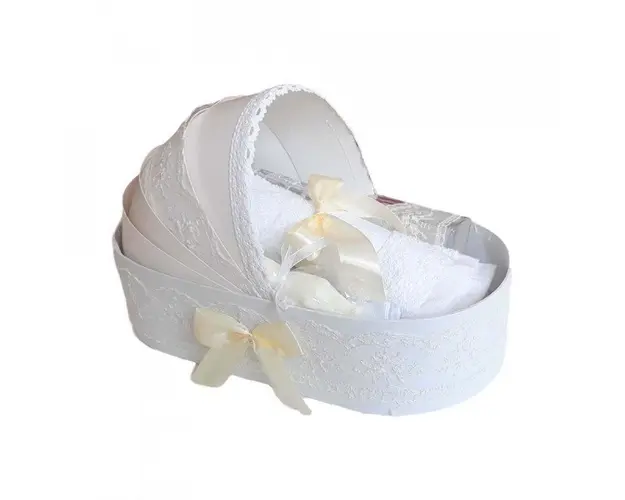 Trusou botez in landou si lumanare glob cu ursuleti, decor ivoire Denikos® 157 DESCRIERE Set special creat pentru ceremonia de botez. Setul este alcatuit din trusou complet ambalat intr-o cutie tip landou si o lumanare decorata cu un glob din tul crem, dantela si doi ursuleti simpatici. Setul contine: - cutie de trusou in forma de landou; - prosop cu gluga pentru bebelus, dimensiuni 80 x 80 cm, 100% bumbac; - panza de mir, 100% bumbac; - prosop pentru preot, dimensiuni 30 x 50 cm, 100% bumbac; - fasa de botez, dimensiune 150 cm; - sticluta de mir, capacitate 100 ml; - sapunel in forma de bebelus; - cutiuta pentru suvita de par. - lumanare de botez (35 cm inaltime). PERSONALIZARE Produsul se poate personaliza cu numele copilului. Numele copilului poate fi scris prin brodare pe prosopul copilului (in coltul de jos al prosopului, opus capisonului), panza si fasa (cost suplimentar). Daca doresti personalizare, alege la optiuni cu personalizare si te vom contacta telefonic pentru a stabili detaliile. Produsul cu denumirea Trusou botez in landou si lumanare glob cu ursuleti, decor ivoire Denikos® 157 face parte din brandul Produs vandut si livrat de sc denikos creativ shop online srl, se afla in categoria Barbie si subcategoria