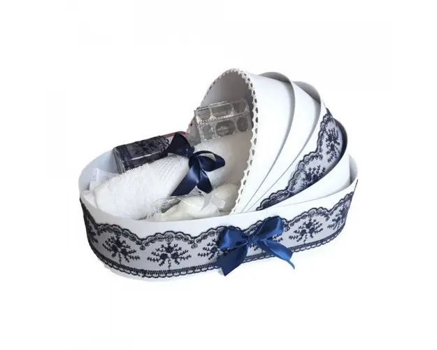 Trusou botez in landou si lumanare cu iepuras, decor bleumarin Denikos® 172 DESCRIERE Set special creat pentru ceremonia de botez. Setul este alcatuit din trusou complet ambalat intr-o cutie tip landou decorat elegant cu dantela si o lumanare decorata cu un glob din tul bleumarin si o jucarie iepuras. Setul contine: - cutie de trusou in forma de landou; - prosop cu gluga pentru bebelus, dimensiuni 80 x 80 cm, 100% bumbac; - panza de mir, 100% bumbac; - prosop pentru preot, dimensiuni 30 x 50 cm, 100% bumbac; - fasa de botez, dimensiune 150 cm; - sticluta de mir, capacitate 100 ml; - sapunel in forma de bebelus; - cutiuta pentru suvita de par. - lumanare de botez (35 cm inaltime). PERSONALIZARE Produsul se poate personaliza cu numele copilului. Numele copilului poate fi scris prin brodare pe prosopul copilului (in coltul de jos al prosopului, opus capisonului), panza si fasa (cost suplimentar). Daca doresti personalizare, alege la optiuni cu personalizare si te vom contacta telefonic pentru a stabili detaliile. Produsul cu denumirea Trusou botez in landou si lumanare cu iepuras, decor bleumarin Denikos® 172 face parte din brandul Produs vandut si livrat de sc denikos creativ shop online srl, se afla in categoria Barbie si subcategoria